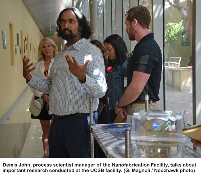 On Thursday, dozens of people toured the AlloSphere, CNSI Innovation Lab, Quantum Foundry and the Nanofabrication Facility (Nanofab) at UCSB as part of TechTopia, an event hosted by the Santa Barbara South Coast Chamber of Commerce.